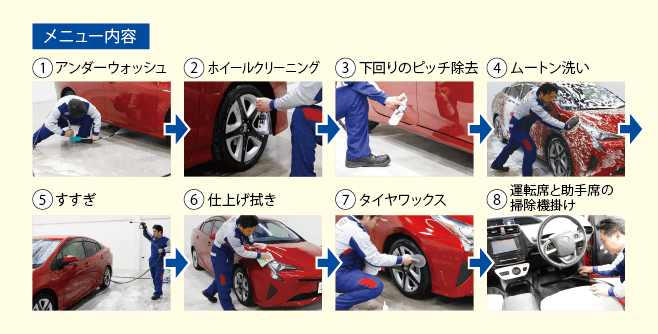 手洗い洗車にホイールクリーニングと、掃除機掛け(前席)をプラス。